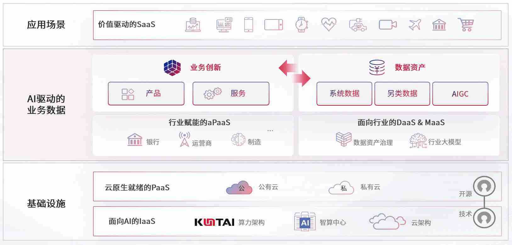 数字时代,,,围绕企业数字化转型的关键要素,,,,尊龙数码开创性的提出数云融合战略和技术体系框架,,,着力在云原生、、、、数字原生、、、AI原生和信创产业上架构产品和服务能力,,,,为处在不同数字化转型阶段的快消零售、、、汽车、、、、金融、、、、医疗、、、政企、、教育、、运营商等行业客户提供泛在的敏捷IT能力和融合的数据驱动能力,,,构建跨界融合创新的数字业务场景和新业务模式,,助力企业级客户建立面向未来的核心能力和竞争优势,,全面推动社会的数字化、、智能化转型升级。。。