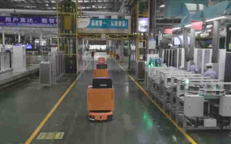 为车载冰箱物流配送打造的智能解决方案,,包含产中物流通过潜伏举升AMR搬运至线边,,,产后成品物流智能仓储,,,流程包含产中物流智能齐套入库,,,线边安灯叫料AMR智能配送至线边,,,成品入库、、、、出库,,,通过无人堆高车机器人,,,,智能仓储管理替代人工作业管理,,,,实现更高存储、、、更高效率、、更具柔性化的解决方案。。。